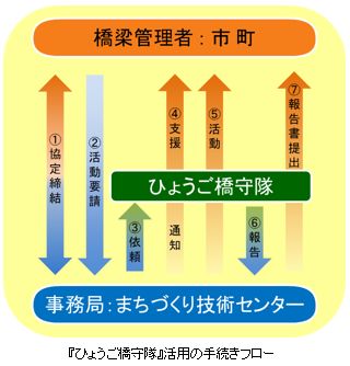 『ひょうご橋守隊』を活用するためのスキームは右図のようになっています。