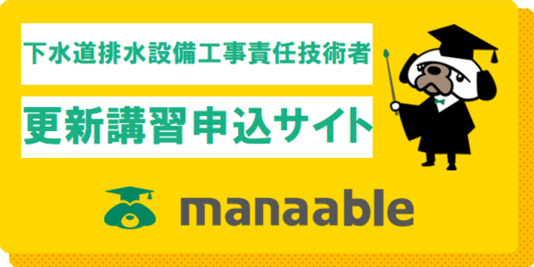 | 注意事項など | ■令和7年度の対象者で②の方について、「下水道排水設備工事責任技術者制度について」の更新講習の項目をご確認ください。 ■会場講習はインターネット環境がない方のみが受講できます。 |