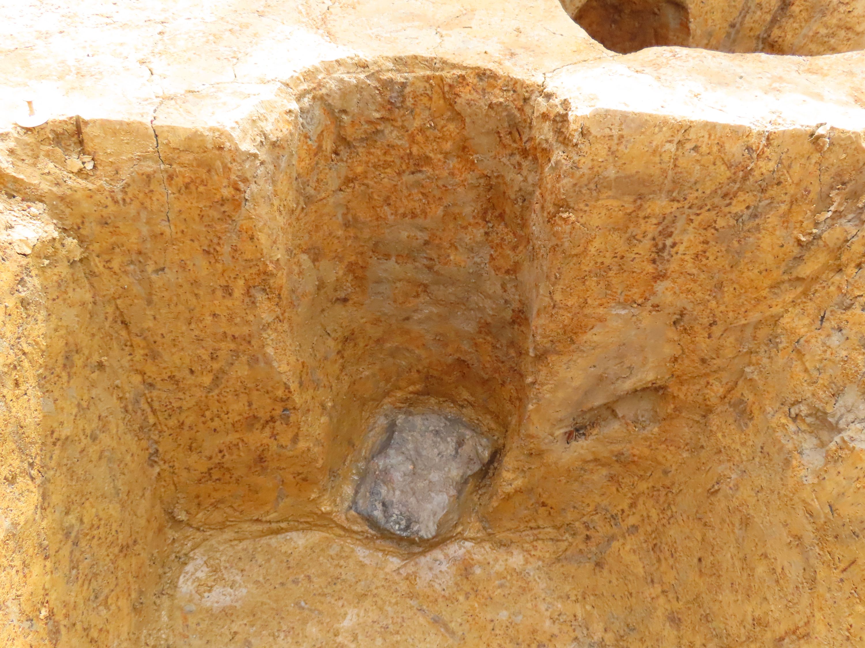 2区では、掘立柱建物跡や落ち込み、柱穴などを検出しました。古代~中世の土器・瓦などが出土しています。
